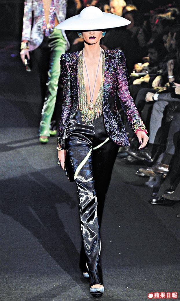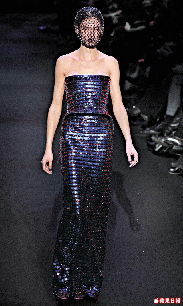 阿曼尼華麗晚裝,恒常為奧斯卡頒獎禮鋪路,今次春夏季,則一洗璀璨奢華紅地毯路,新作以七彩搶眼的sci-fi閃亮登場。設計師揚言靈感來自七彩寶石,設想中的藍寶、綠寶和紅寶,卻呈現一份mirroreffect,格調相當科幻派,由帽子大師PhilipTreacy設計的mirroreffect飛碟形headpieces,更推波助瀾。