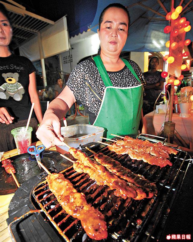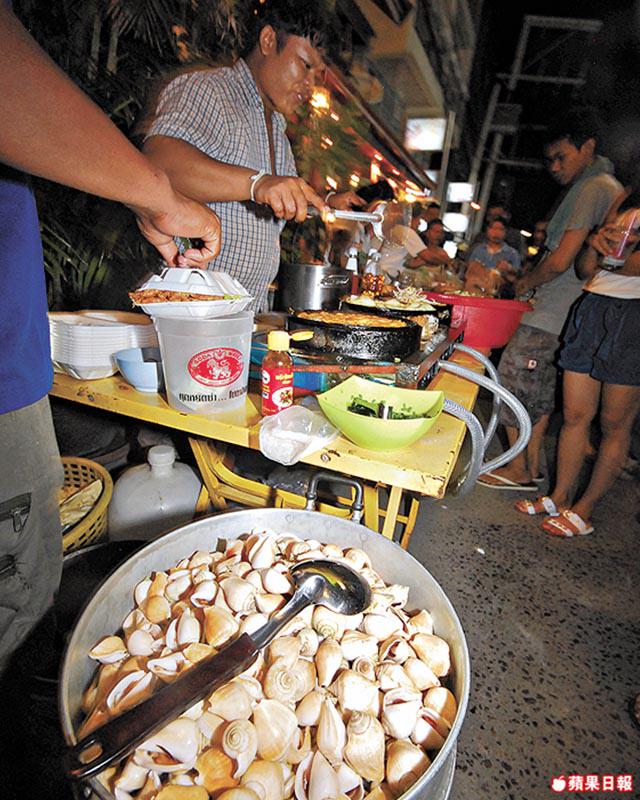 來泰國的旅客,無論逛過多少個多少次泰國各地的夜市,到日落西山之時,對腳同個腦總係自自然然地飄去那燈火閃閃,人潮往來的夜市。蘇梅的夜市,像八十年代時香港的大笪地。Fisherman'sVillage的路以海邊的一個T字組成,紅起來,因為沿海一段都給外資湧進,整條路都開滿hip又chic,坐滿歐美遊客的閃閃令酒吧。平時,就係蒲吧友的世界,但周五晚由直路走進,水晶吊燈的洋化酒吧前,排滿一個個冒煙的「車仔檔」,一家大中小吵吵鬧鬧,打頭陣清一色BBQ串燒肉,芭蕉扇撥行炭火爐,咖喱與沙嗲等肉香飄至,隔一會有成籮噴水的蜆,60銖一個大筲箕即炒即食,仲有芭蕉燒糯米飯、pancake、連雞尾酒都有車仔檔,好熱鬧呀!我同Sukmi一個好烤肉一個愛甜品,咬住塊薄餅之時Sukmi又塞我食咖喱,同行泰國人同旅客也都一樣,因為同一般夜市不同係,統統都無桌椅,管你食蜆定食薄餅,一係買走一係捧住一路行一路食,一係,幫襯酒吧囉!