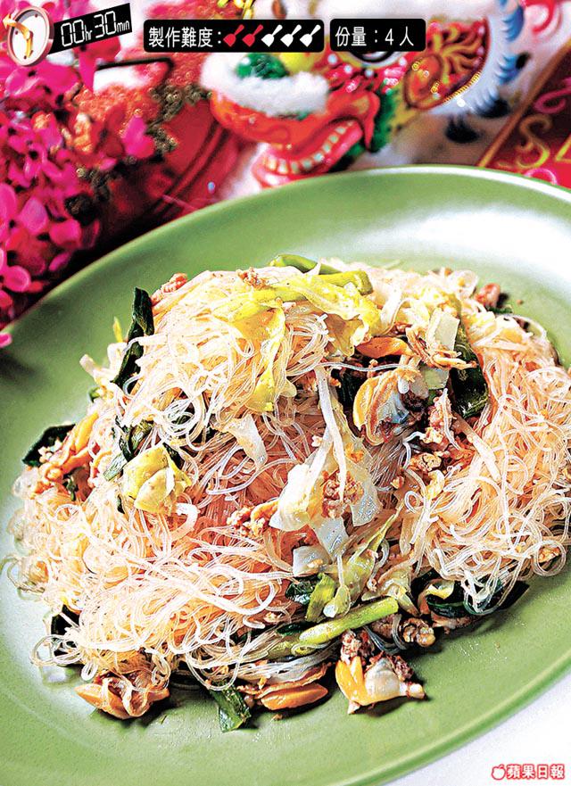 1.新竹米粉以清水浸軟,瀝乾備用。