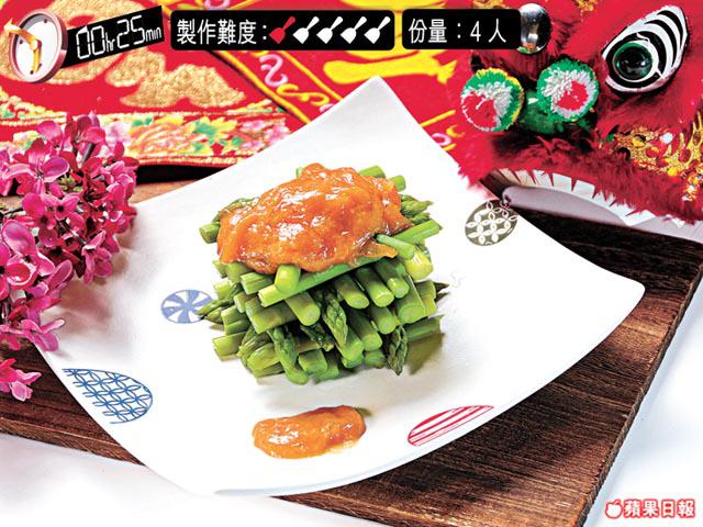 2.將味噌、薑茸、柚子蜜及麻油放小碗內拌勻備用。蘆笋伴以醬料一同享用即可。