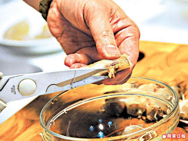 新鮮蝦的蝦身與蝦頭會緊密不分,而蝦頭亦無瘀黑色。
