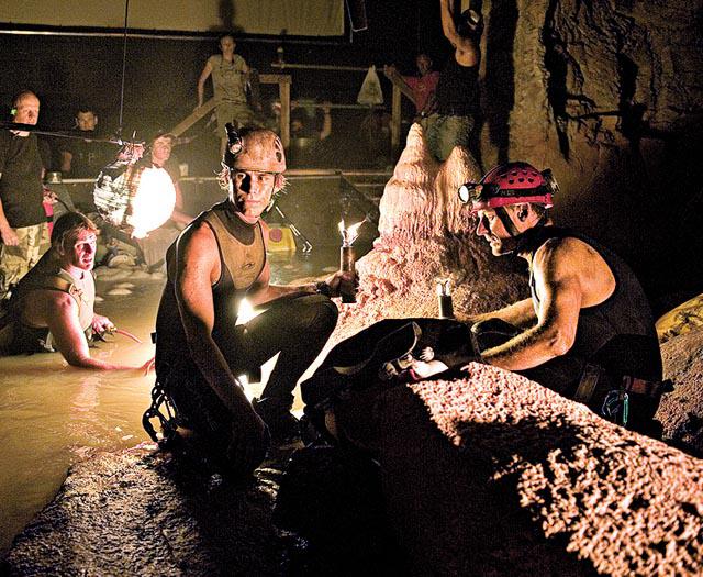 由占士金馬倫監製、AlisterGrierson執導的驚悚片《潛行深淵》描述由李察諾斯博(RichardRoxburgh)飾演的潛水專家Frank,率領17歲兒子Josh(懷斯威克菲飾)、投資者Carl(艾恩古福特飾)及其女友Victoria(愛麗絲柏堅遜飾)等人組成的探險隊,深入巴布亞新畿內亞的地下洞穴不毛之地,正當隊員潛入地底水洞時,一場暴風雨令沙石雨水滾滾落下,整群探險隊被困在洞穴的迷宮中,在生死關頭之下,他們只能利用手上僅有的器材,潛入錯綜複雜的水底迷宮,找出連接大海的秘道。編劇之一的安德魯威特將潛水探險時險遭活埋的真人真事寫成劇本。