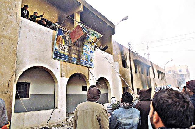 卡達菲昨日兩次在國營電視台上亮相。在第二次的亮相,他穿上啡色長袍,在他1980年代遭美軍空襲的的黎波里邸宅中,激昂地發表演說,正式就國內反他的革命作出回應。他揚言會繼續帶領利比亞革命不下台:「卡達菲沒有職位要辭退,卡達菲是革命的領袖。」