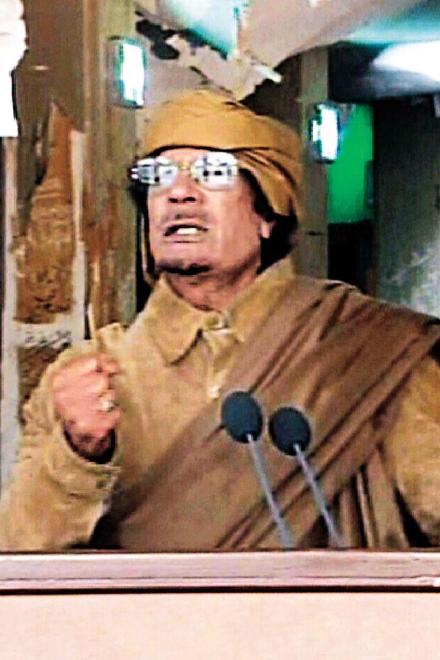 這個68歲的利比亞狂人,一生很狂。他年僅27歲就聯同一批軍官發動不流血政變,推翻利比亞伊德里斯王朝,建立阿拉伯利比亞共和國,1986年改名為大阿拉伯利比亞人民社會主義民眾國。他雖沒正式官銜,但多年來以革命導領人身份出任國家元首。他至今是非洲和阿拉伯國家在位時間最長的領袖。在他任內被公開處決或無故失蹤的失對派人士,罄竹難書。