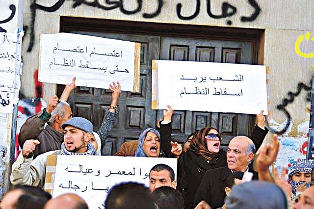用防空導彈轟擊示威者、用戰機炸首都,在利比亞獨裁統治41年的卡達菲,盡現狂人本色。他狂性大發,昨日(周二)兩次上電視,回應倒他的反政府示威。他揚言不會離開首都的黎波里,不會下台,死也要做「烈士」。他更警告會在利比亞上演天安門式屠殺,鎮壓示威者。