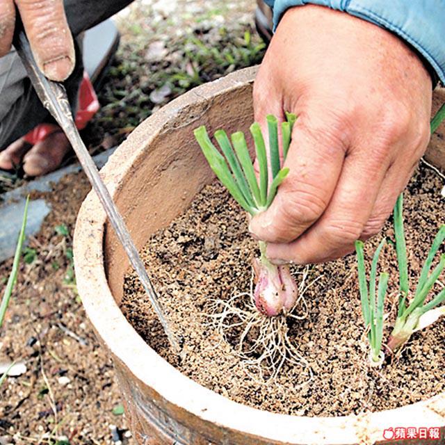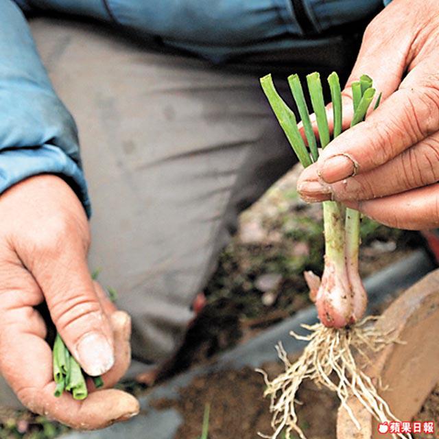 將根及葱白埋入泥中,隔天澆水,約20日即成。