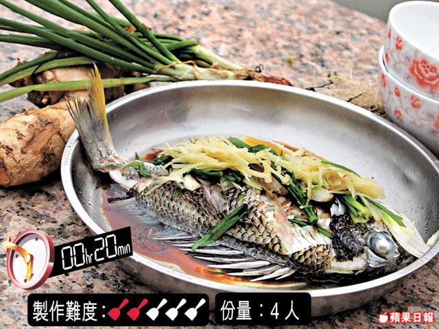 2.煲滾水,開大火隔水將魚蒸8分鐘,熄火前灑上少許鹽,倒去碟上多餘水份。