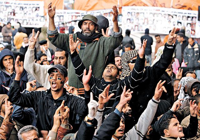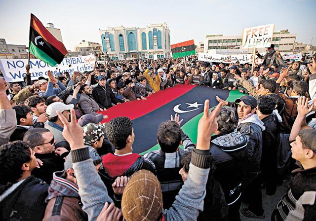 突尼斯和埃及的革命,都是80後的年輕小伙子透過fb、twitter號召發起,但利比亞則不同,在背後發功的人,原來是一群思想成熟、活躍於參加反政府活動的人。卡達菲一直沒擬定憲法,早於兩年前,利比亞的律師組織就開始推動立憲法治,兩周前埃及fb革命激烈爆發時,利比亞人權律師德比爾(FathiTerbil)在班加西被捕,這群反對派於是號召民眾在上周四「憤怒日」示威,燒起推翻卡達菲狂人政權的火頭。