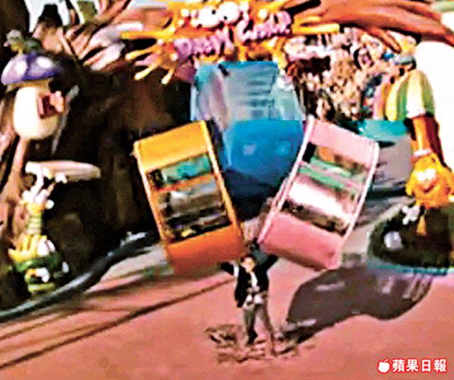 大反派樊少皇搗亂遊樂場,肢解摩天輪,摩天輪車卡高速飛脫之際,華仔左手接右手擺,三個車卡一抱入懷,離譜。