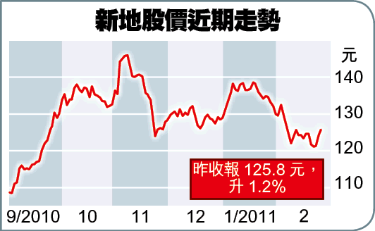 【本報訊】新鴻基地產(016)昨日公佈截至去年12月底止中期業績,優於市場預期。受惠於中港及新加坡入賬項目增加,核心盈利刷新紀錄,高達104億元,增長60%,中期息每股0.95元,增加12%。管理層無懼政府出招遏抑樓市,有信心今個財政年度可以完成260億元銷售目標。 記者:高淑嫻
