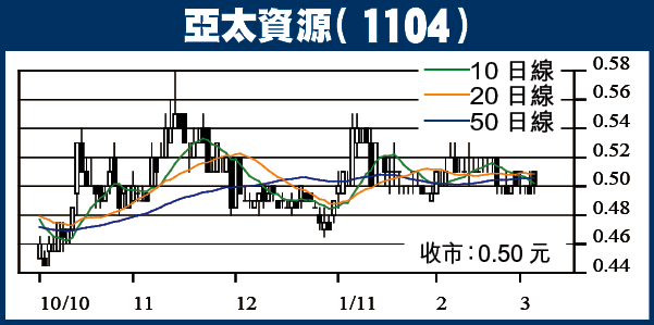 亞太資源(1104)呢期公佈截至去年底12個月業績,純利翻一番到11億銀,亦係另一隻業績省鏡股。計計數,以呢期集團每股盈利16.8仙計,現價(0.50元)折合PE得2.9倍。再講,亞太資源最新揸住現金近5億銀,就算扣除一項孖展融資負債,淨現金都過3億銀,又係現金牛。呢轉短打,博股價升20%到0.60元,都未有耐上到NAV每股0.73元水位。