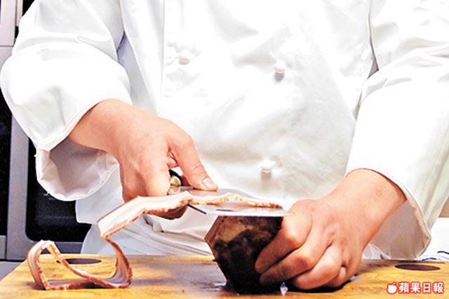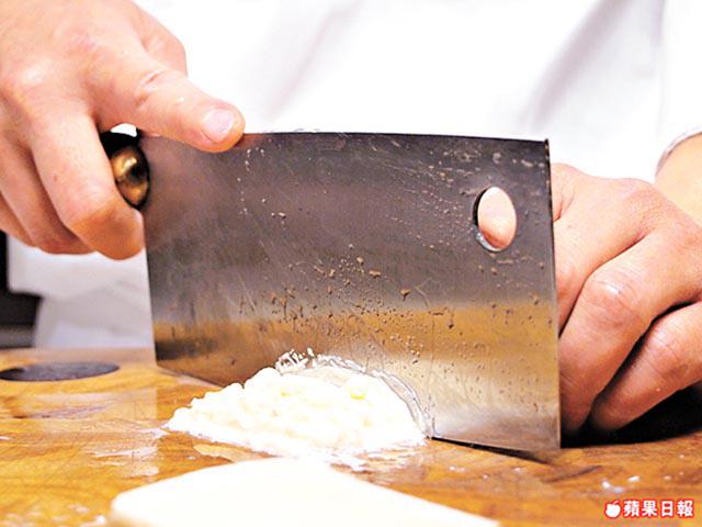 刀法是根據不同的烹調需要,將食材以不同切法來雕切。黃師傅的刀工獲得國內勞動局頒發證書,可謂刀法中的Master!「一味切薄無用,一定要大小厚薄平均。」他為大家示範了幾種常用刀法,而有時切食材更會用上一至兩種刀法。