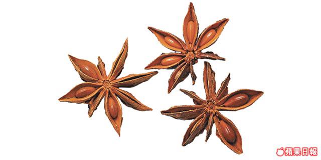 八角是大茴香的種子,有健胃祛寒的功效,市面時有假八角,形狀和真八角相似,但只有五角,實為其他植物,選購時須小心。
