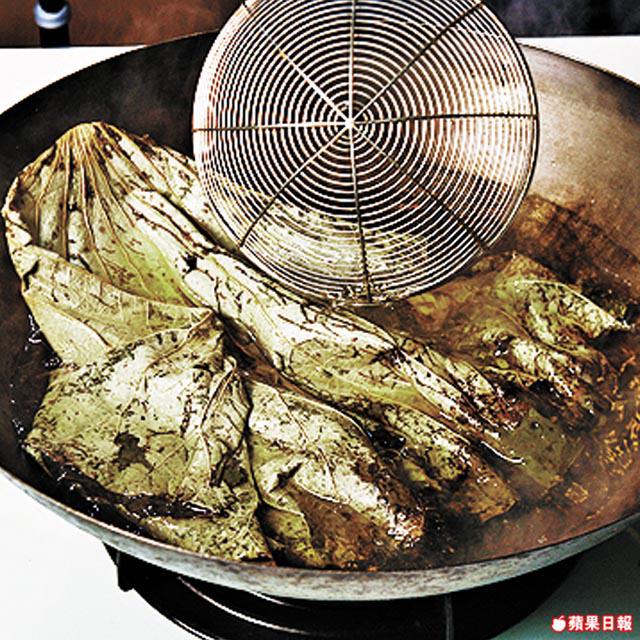 1.乾荷葉先用滾水烚煮至軟身,取出並刷洗乾淨,抹乾備用。
