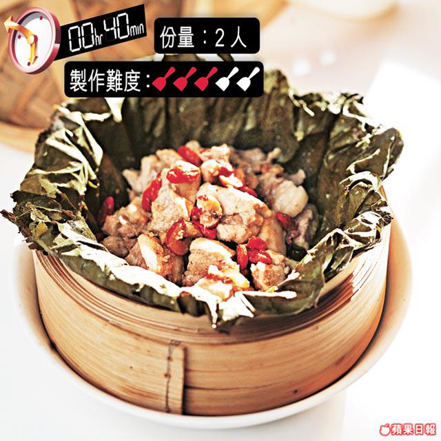 5.將排骨及配料用荷葉包好,放入鑊內,隔水以大火蒸15分鐘。食用時將荷葉打開即可。