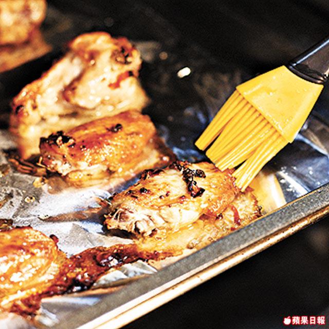 5.將蜜糖跟水拌勻成蜜糖水,塗在雞翼上,再改以120℃焗20分鐘即成。