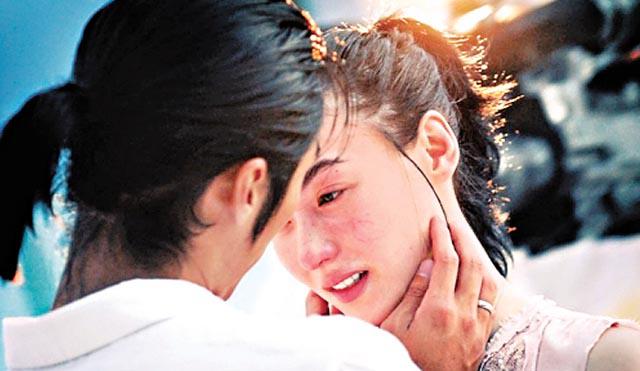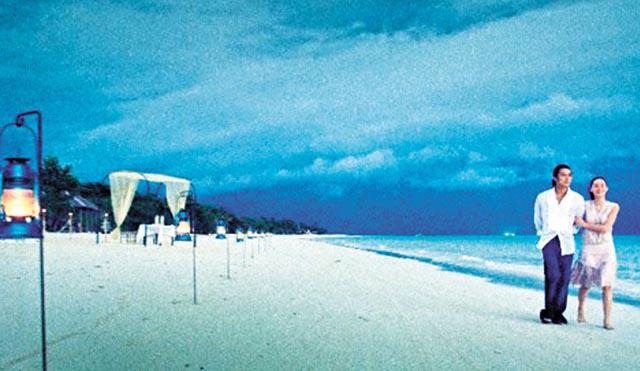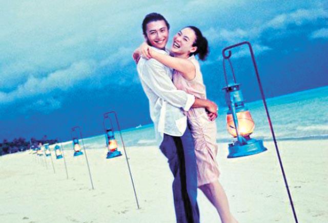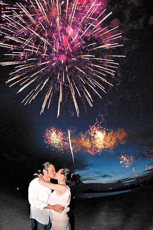 還有霆鋒與栢芝在沙灘相擁漫步,以及二人在煙花下情深擁吻照片。不過,最矚目的,還是栢芝穿上火辣紅色三點式泳衣,在海邊被赤裸上身的霆鋒攬在懷中並輕吻粉頸,照片中栢芝一臉陶醉,幸福滿瀉。