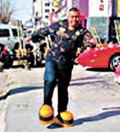 吉林省白城市男子韓衞國有着驚人腳力,被稱為「鐵鞋王」。日前他在穿上一對高30厘米、重160公斤(約352磅)的鐵鞋(圖),在12秒內走了12步,大約是4米。韓之後再請來兩名年輕女子,要她們站在鐵鞋上,繼續踏步行走,兩女嚇得不斷驚叫,圍觀者則報以如雷掌聲。韓衞國準備挑戰用重250公斤(約551磅)的鐵鞋,創造60秒走10米的世界紀錄。《吉林城市晚報》