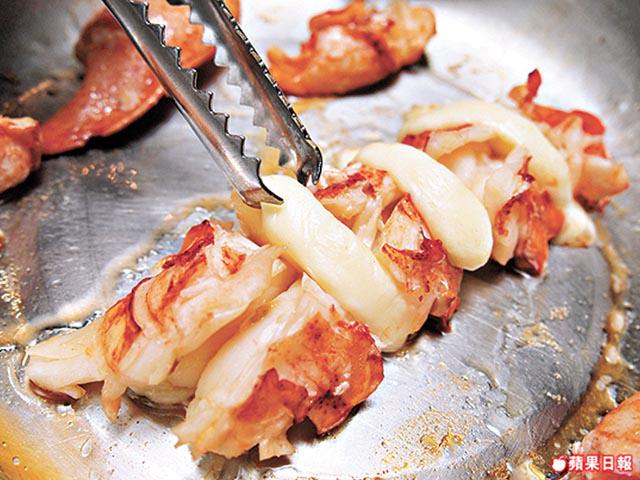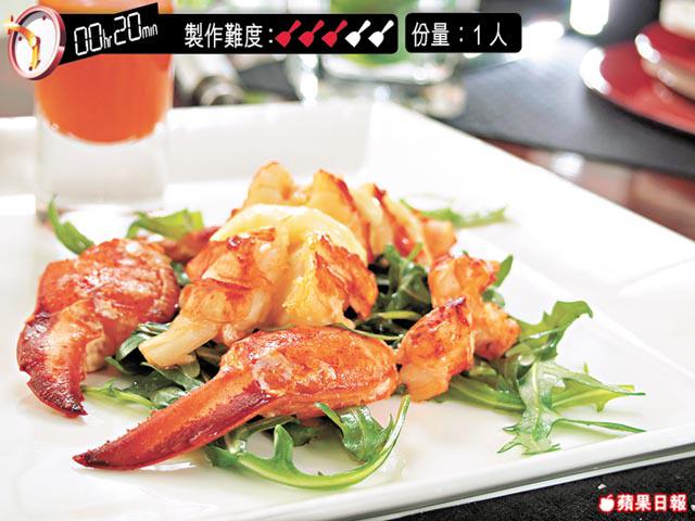 1.將龍蝦蒸3-5分鐘至熟,略浸冰水後,去殼起肉。