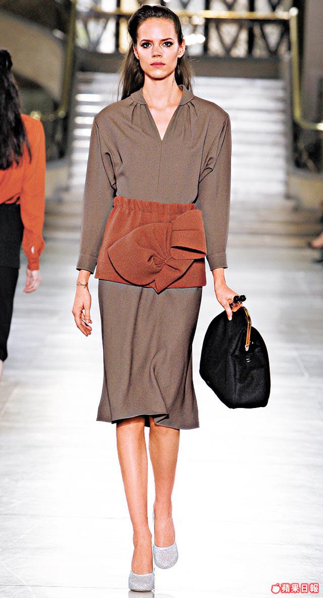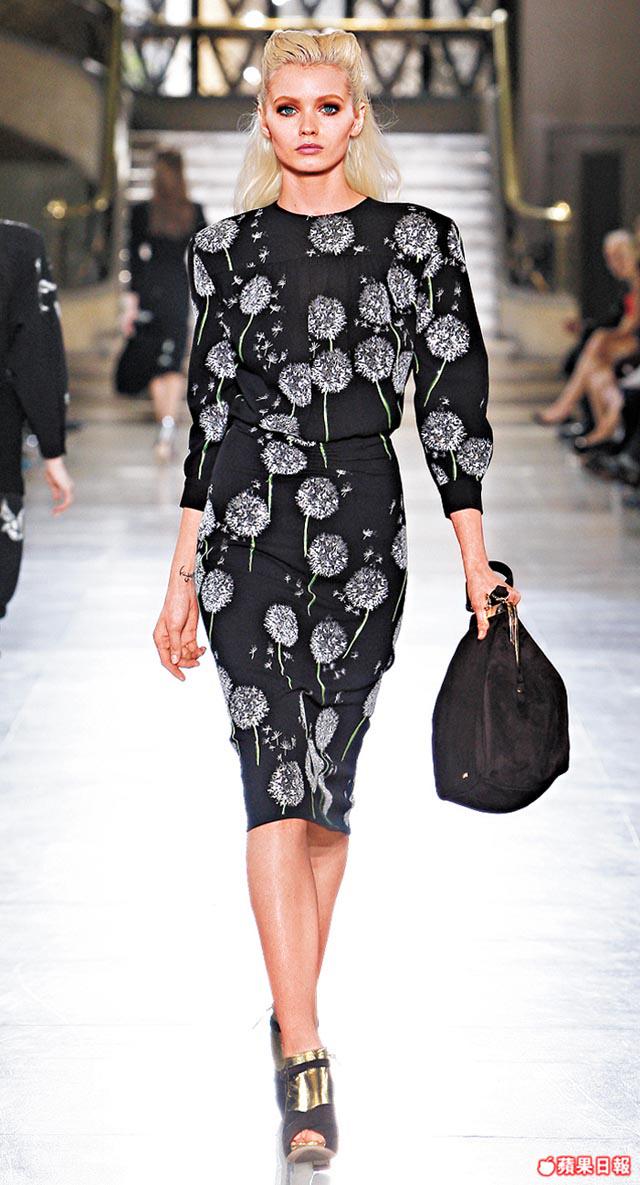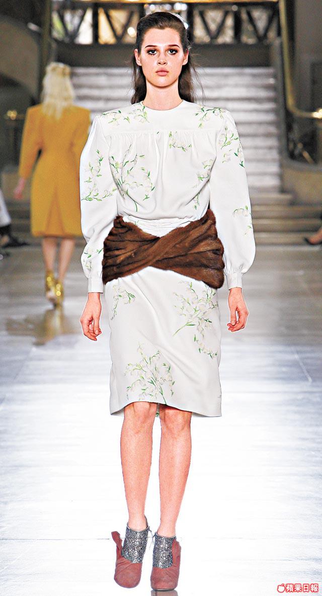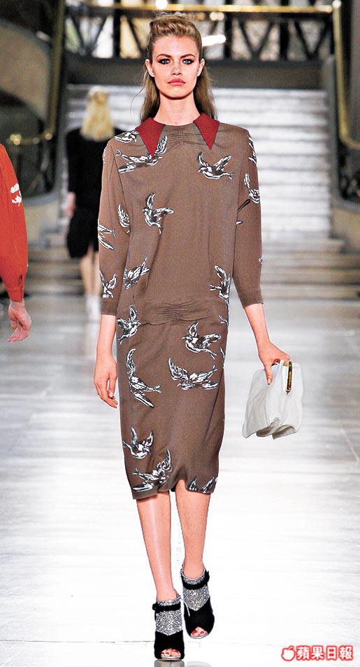 新裝包括有銳利如殭屍牙齒的白色尖領裙、強調膊位的大衣或裙,大衣花臣有雙色或大鈕陣,luxe&glam的皮草位置則扛於肩腋位或作obiwrapbelt,大自然花鳥圖案MiucciaPrada則細數水仙、菊花及燕子。配件如常strong,放大了小銀包如今是clutch,以及黑金、黑銀、淺綠等ruffle與glittering金銀連成的雙色鞋,都是一見傾心的好鞋子。