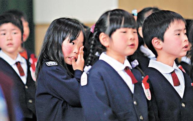 昨日,氣仙沼市的Ashinome幼稚園舉行畢業禮,50名小小畢業生大多穿上可愛的水手裝校服,排排企齊齊向在場家長及老師鞠躬。校長斧寺向27男23女學生頒發畢業證書後致辭,請所有人向一名「未能出席的」同學致意:「一個和你一起玩、一起吃點心、一起練習串字,還有在音樂會上台唱歌的朋友,今天不在這裏,你們一定要永遠記得這個朋友。」
