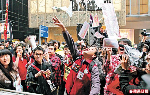 示威者其後來到長江集團中心撒溪錢,又將寫有「地產霸權」的旗幟一撕為二。他們傍晚到立法會外作最後示威。從內地來港不足一年的周思敏表示,關愛基金向低收入新移民派6,000元等於「傷多我哋一次」。她說措施分化及標籤新移民,「好似乞兒咁,唔攞好過攞」,她寧願政府增設地區託兒服務,讓她安心工作自力更生。