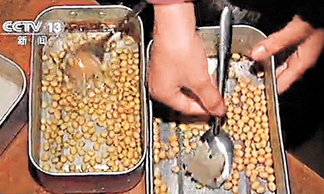 一盒米飯,加點黃豆,住在學校的全校學生,食譜餐餐如此,天天如此,從小學吃到初中畢業。「好吃嗎?」「好吃。」「有沒有別的菜?」「沒有。」「天天這麼吃會不會厭?」「不會。」被央視記者問及,蹲在地上的孩子們大口地吃着,天真地回答。