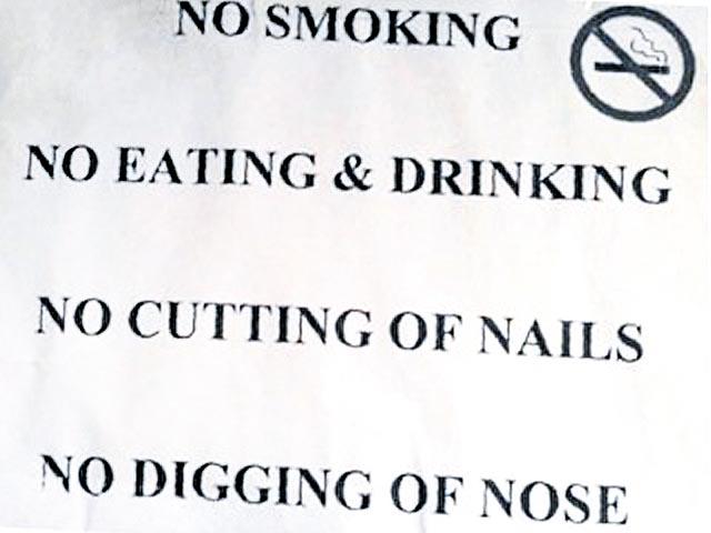 新加坡講清潔衞生,但乘客缺德怪行層出不窮,繼早前巴士張貼禁止毆打司機標籤後,有的士司機更在車內貼上「四不」警告告示(圖),除不准吸煙和飲食外,竟明言禁止車廂內剪指甲(Nocuttingofnails)及挖鼻孔(Nodiggingofnose),引起熱議。
