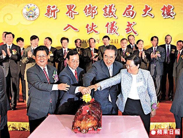 位於沙田石門安睦街的新界鄉議局新大樓昨日入伙,署理行政長官唐英年及身兼馬會董事的全國人大常委范徐麗泰出席主禮。劉皇發表示,希望新大樓啟用後可以宏揚中國藝術文化,維繫新界氏族文化精神,發展成新界地區重要地標。