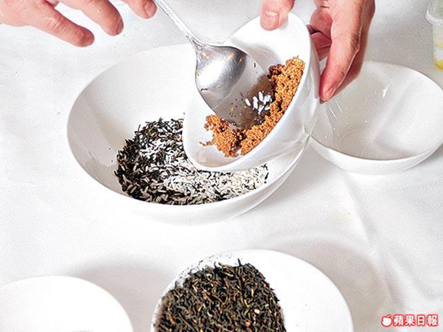 2. 將茶葉、黃糖、白米混合,倒入鋁造小盤中,再放入煲內。開中火加熱,冚上蓋至有煙出,熄火。