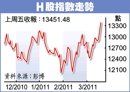 踏入第二季,中資股的投資氣氛明顯較年初好轉(見圖)。企業業績期近日主導H股走勢,成為繼上月「兩會」後大市另一向上的新動力。不少股票已收復今年初因通脹憂慮而下跌的失地,3月份H股指數升幅達6.5%,而第一季則升4.9%。在部署第二季的投資時,剛公佈的企業業績及行業趨勢或可為投資者帶來啟示,其中內銀股及內房股前景值得看高一線。