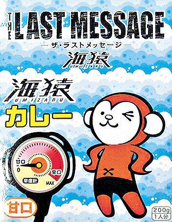 日本受歡迎的電視劇集或電影,通常都會推出大量有關商品,《海猿》亦不例外,今次在最後一套《海猿》電影中,推出的商品就包括在電影中出現過的海猿毛公仔、電話繩、打火機、艦隻模型等等,甚至連即食咖喱(小圖)及蒸餾水都有。當中最受歡迎的正是在電影中出現過的海猿卡通公仔,原來「海猿」的意思是指潛水員在海中都有如陸上的猴子般靈活,所以設計了這款公仔。曾推出了大中細三款,連最貴價的6,825日圓(約648港元)的公仔亦早已在日本網上訂購被搶購一空。