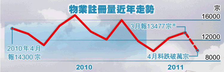 美聯物業首席分析師劉嘉輝預期,樓市轉趨理性,加上受到日本核危機及加息影響,料4月份整體買賣登記將回落至約1萬宗水平,較3月份的13477宗減少逾兩成。