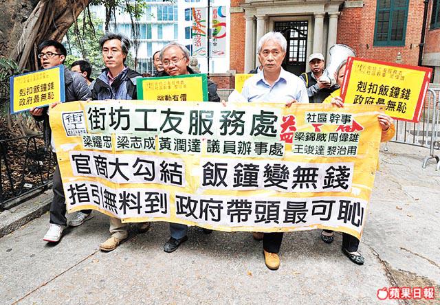 飲食及酒店業職工總會組織幹事胡穗珊指出,「基層勞工都係低學歷,低技術,老闆一定嚇佢哋,你唔做,大把人做,工友只有無奈接受,捱唔住就搵過另一份工」。其實目前大部份月薪工作都已將休息日及用膳時間計算在內,政府應帶頭規定所有政府外判商對休息日及用膳時間必須計薪,同時應修改僱傭條例,清楚訂明兩者都計薪。