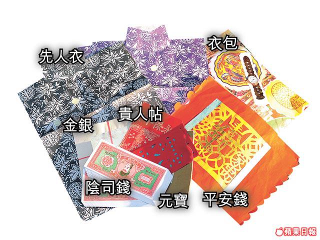 祭祖常選購男、女衣包。但當中有甚麼?其實一般衣包有齊紙紮品及下列物件,已足夠祭祖之用。(註:衣包內容因應紙紮店而定。)