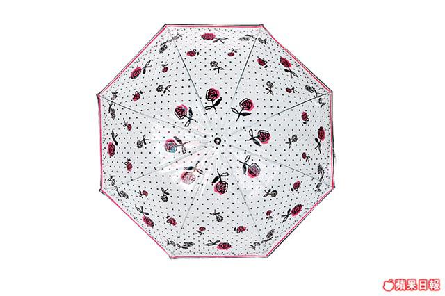 2. w.p.c透明玫瑰傘$199/d有人愛透明雨傘的穿透效果,這款配以玫瑰及波點圖案,更為搶眼。