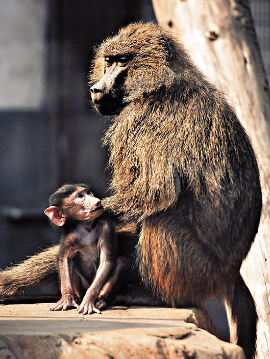山東煙台南山公園動物園首次成功繁殖國際珍稀動物綠狒狒(圖)。快兩個月大小綠狒狒前天在精品猴館與遊客見面,牠就像一隻小精靈,四肢還很稚嫩,渾身長着毛茸茸的黑毛,大眼睛警惕地看着周圍,稍有動靜,便會鑽進媽媽的懷裏,十分可愛。據悉,綠狒狒在人工飼養環境下繁殖難度極大,成活率極低,成長過程中牠們身上的毛會慢慢變成橄欖綠色。新華社