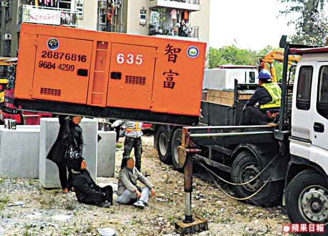 【本報訊】近日網上流傳一幅照片:地盤內工人正準備從工程車卸下一部巨型發電機,三名師奶卻奮不顧身堅守發電機下阻止卸貨,險象環生。相中師奶既不是內地拆遷戶,也不是菜園村巡守隊,而是中產聚居的美孚新邨居民。