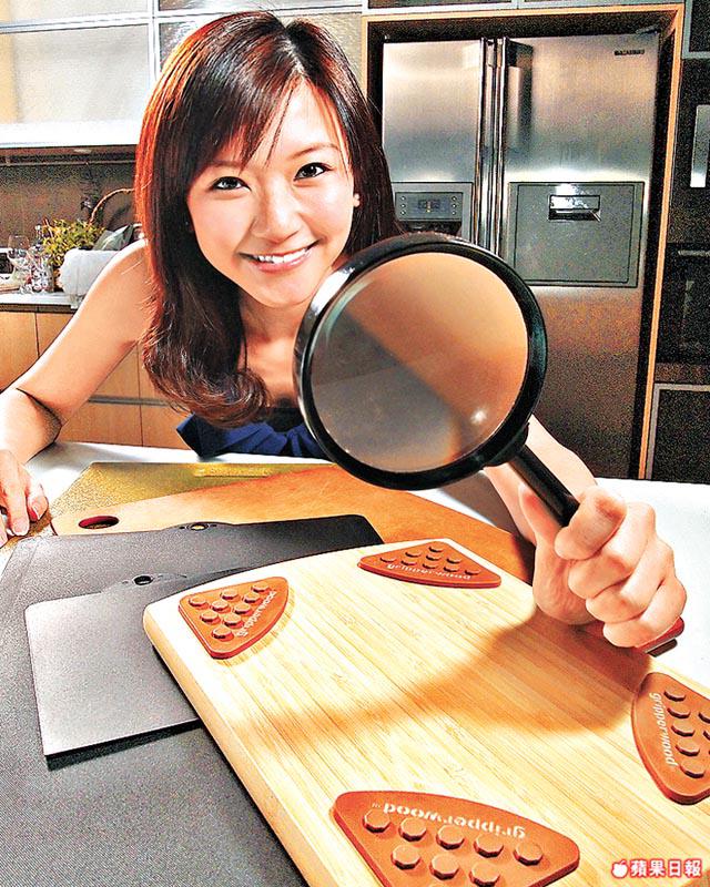 現今市面上湧現不同的砧板,兼且大部份都標榜抗菌,今次就選來幾塊有特別sellingpoint的砧板作測試,看看這些以肉眼能驗證的賣點是否屬實。首先是由Epicurean出品的木纖維砧板,製造商指它能防止霉菌增生,我們就將豆腐鋪在已切花了的砧板上,並閒置三天,發現豆腐已發霉,但砧板卻沒有發霉,證明以木碎高壓而成的砧板就算切花了,亦不怕因汁液留在花痕中而藏污納垢,難怪店員指這塊砧板清潔時大可安心使用洗潔精了。而另一款測試的是architec的鮮色砧板,店員指用來切水果最好,因為它不易染色,我們今次就將士多啤梨及番茄在砧板上用力摔,然後閒置一天,結果發現砧板表面雖留有果汁的痕迹,但抹去後表面亦沒被染色,算是合格!砧板以天然物料亞麻籽殼製造,廢棄時易於分解,較傳統的膠砧板環保得多。
