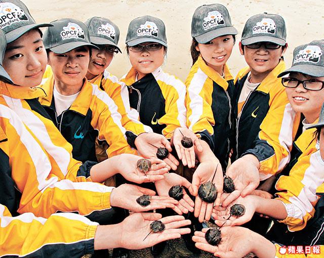 研究顯示,香港的馬蹄蟹02至09年間大幅下跌九成,與其棲身的泥灘環境受城市發展及人為破壞有關。海洋公園保育基金09年與城市大學合辦馬蹄蟹校園保姆計劃,10間參加中學各獲5至70隻馬蹄蟹幼卵,由學生親自飼養。經過14個月人工飼養後,昨日特定帶回下白泥放生,整體存活率達16%,較其野生存活率僅得萬分之一高出甚多。