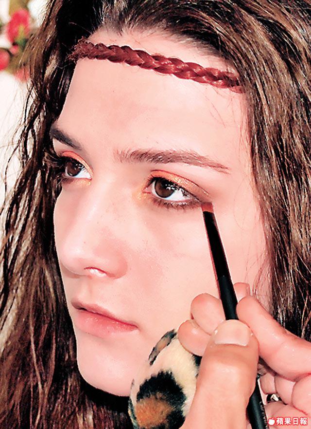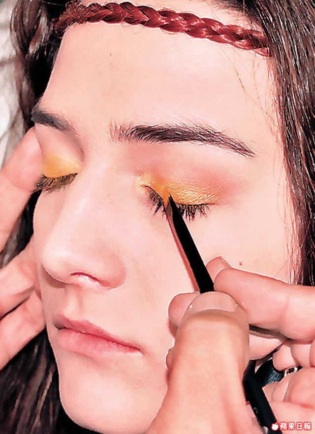 即使是偏啞的橙色,因色調問題也很易令眼皮看似浮腫,因此建議配合眼形及輪廓眼妝同時使用。