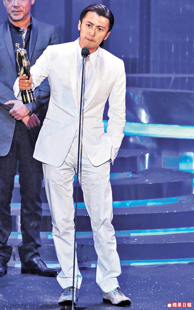 至於憑《綫人》成為影帝的謝霆鋒不忘先chok一下樣再跟身旁的太太張栢芝擁抱,他在台上說:「多謝太太陪我來,notjusttonightit'sabeautifulnight。我太太問咗我好多次,老公如果你攞獎你有乜嘢講。我18歲攞新人獎,我老竇曾經同我講過,『我喺你細細個時拍過幾百套劇、幾百套電影。』嗰晚我就同番佢講,你拍過幾百套戲,你有冇攞過金像獎,之後一個獎擺喺枱上。我知佢係屋企睇緊電視,我唔知點解呢番說話哽喺心入邊12年,我希望佢唔好似我咁放喺心12年。希望佢原諒呢個不知天高地厚、無禮貌嘅小朋友。要湊大一個咁難教嘅細路、每日笑面迎人,你至係最佳男主角。」此時台下的太太張栢芝已哭成淚人。