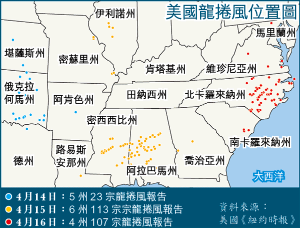 蒂默上周五與助手,驅車到密西西比州首府杰克遜附近,一股恍如巨型漏斗的龍捲風,在他們前面不遠的地方高速掠過。這個移動中的大旋渦,夾雜着風、雨、煙、霧,氣團不斷由底部向上噴。其間它摧毀電線桿,引爆多道閃光。當龍捲風在一條橋樑旁邊橫掃時,許多雜物被捲起,有汽車在橋面駛過,險象環生。