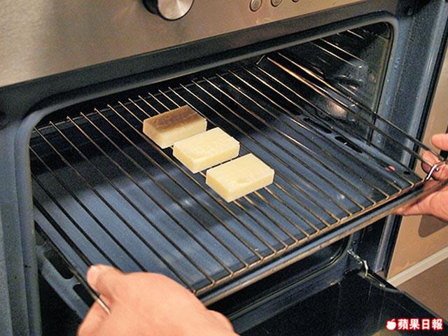 2.將年糕放上爐架,放入預熱至200℃焗爐中,焗約20分鐘至脹身。