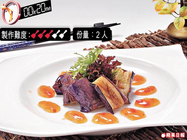 4.將茄子切件,上碟,放上汁料,吃時蘸上即成。