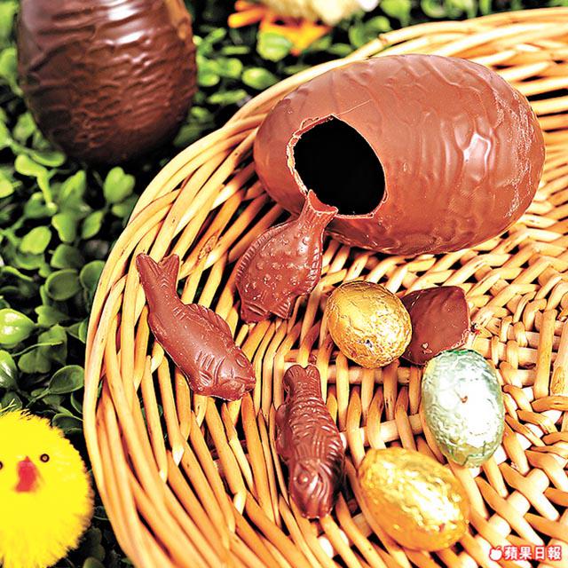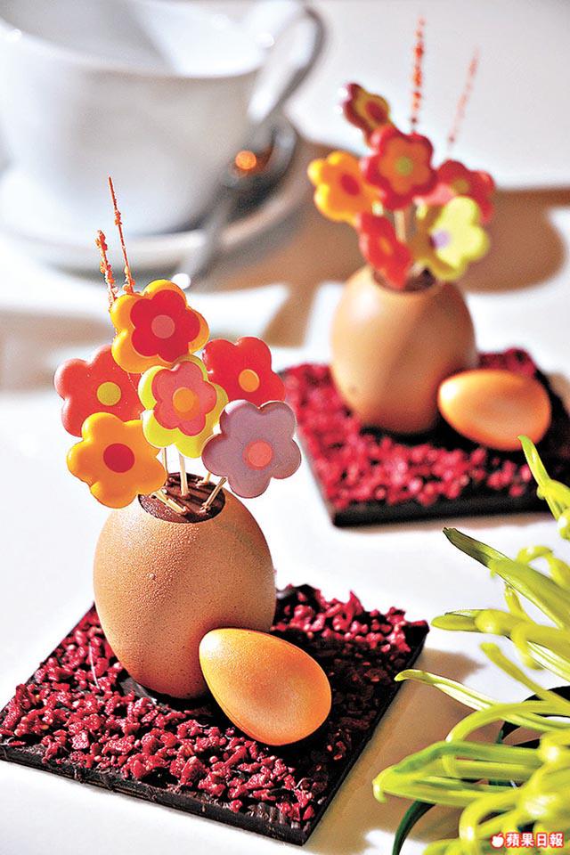 復活珍寶朱古力蛋,則是愛美女生至愛,蛋面有朱唇、禮物盒等裝飾,外面掃一層金粉,打開裏面,有牛奶、白朱古力、杏仁、黑莓等六至七款朱古力蛋,很有驚喜。「傳統朱古力蛋不會只得空殼,內裏必定放滿小型朱古力蛋,讓小朋友打破後有得吃。」用真蛋殼設計的「快樂花園」,上放用白朱古力做成的花朵,猶如春天盛開的鮮花,形態優雅,靚到捨不得吃。