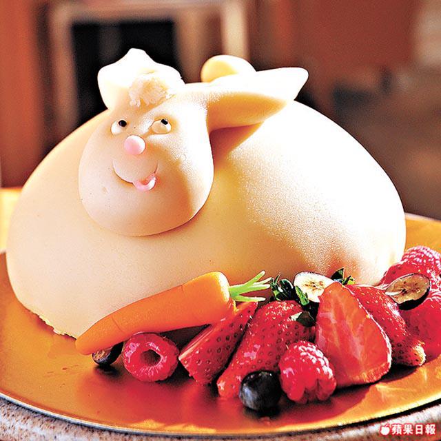 平常見到的復活節朱古力兔仔,多是身材苗條,「帝苑餅店」糕餅總廚馬思龍師傅將之變成圓滾滾的Q版肥兔,特地選用忌廉蛋糕底,「忌廉本身白雪雪,和兔子顏色很配襯,忌廉內有蛋糕托底可支撐兔仔重量,若選用慕絲的話,兔仔很易下墜。」另一個小雞復活節蛋糕,母雞用杏仁糕做出來,底下為栗子忌廉蛋糕,中間則以不規則的餅乾做成巢穴,維肖維妙。