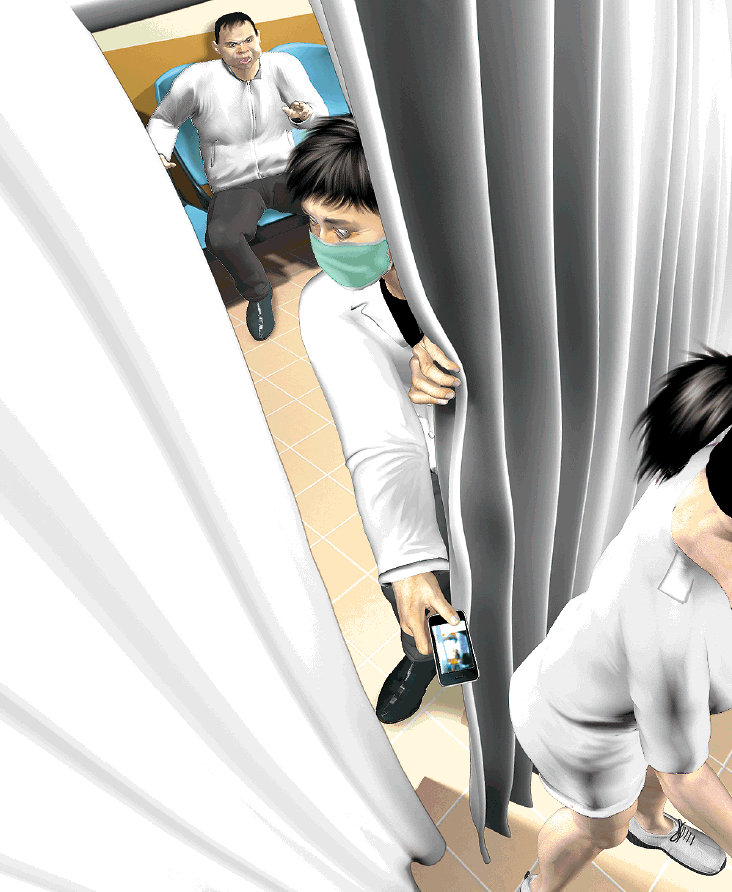 據悉,當時診症間內有一名女學護、一名病人以及病人家屬,女學護並無發現有人偷拍,反而是一旁的病人家屬看到有一隻握着手機的手從布簾旁伸進來,幾乎與布簾外的目擊者同時大叫。