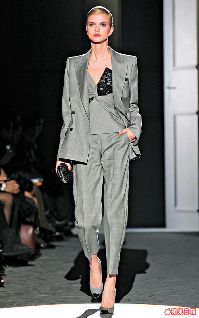 衣衫方面,則是永恒不變的自信能幹女人look,項目如乾濕褸、silkwrapdress、裙或褲裝、halterblouse、開衩pencilskirt。圖案有headtotoe一氣呵成,也有風馬牛不相及的相遇remix。在能幹女強人造型過後,也是時候露一下溫柔艷光,一系列精細刺繡蕾絲輕紗shirtgown,配搭強watt數的閃爍碎鑽頸鏈,作柔情也燦爛的收筆。
