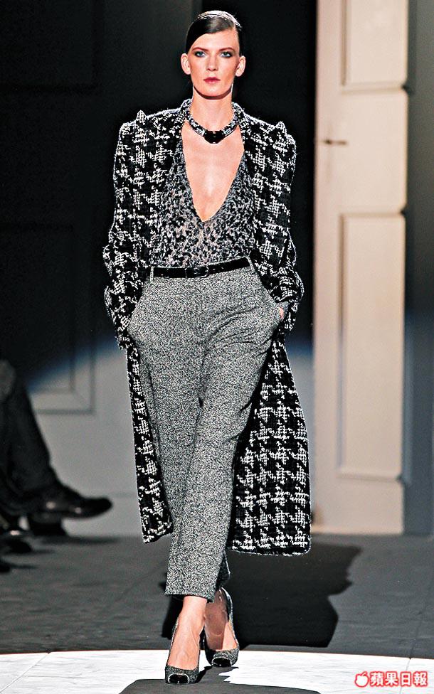 早前在米蘭發表的2011秋冬系列,MassimilianoGiornetti以大舉強烈classic、elegance及tailoring出擊,輪廓剪裁有絲絲80年代的果敢,採納的圖案更如山洪暴發,經典的、野性的、graphicmood的一一列陣,包括houndstooth、zigzag、polkadot、間條和豹紋等。